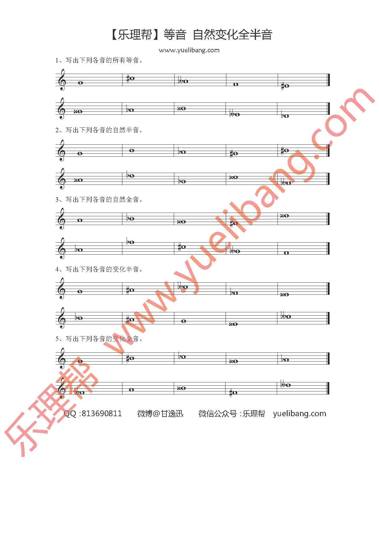等音 自然变化全半音 试题 下载