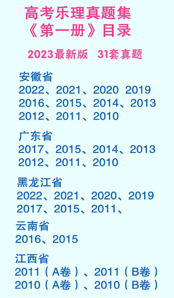 安徽省、云南省、广东省、黑龙江省、江西省 2010-2023年乐理真题